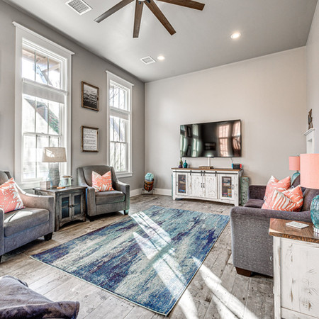 Outside, the magic continues with a BBQ grill, fire pit, twinkling lights, and lush landscaping creating an enchanting atmosphere. Just steps away, you’ll find yourself immersed in the excitement of Mama Tigs Woodfire Pizza, Sandy Beach Volleyball, retail pop-up shops, Theresa Meeting House and much much more.